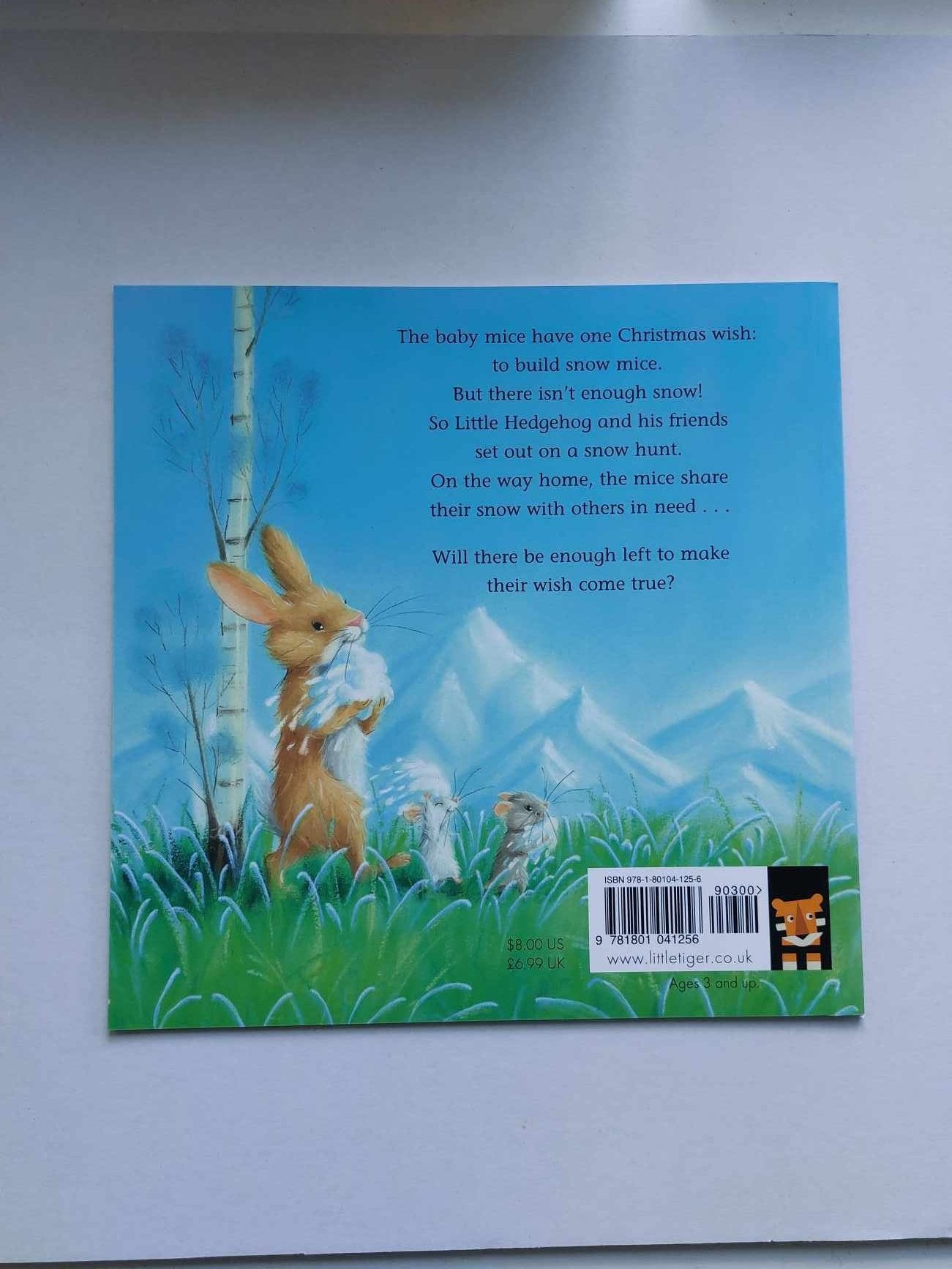 So Little Hedgehog and his friends set off on a snow hunt. On the way home, the mice share their snow with others in need. Will there be enough left to make their wish come true?